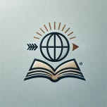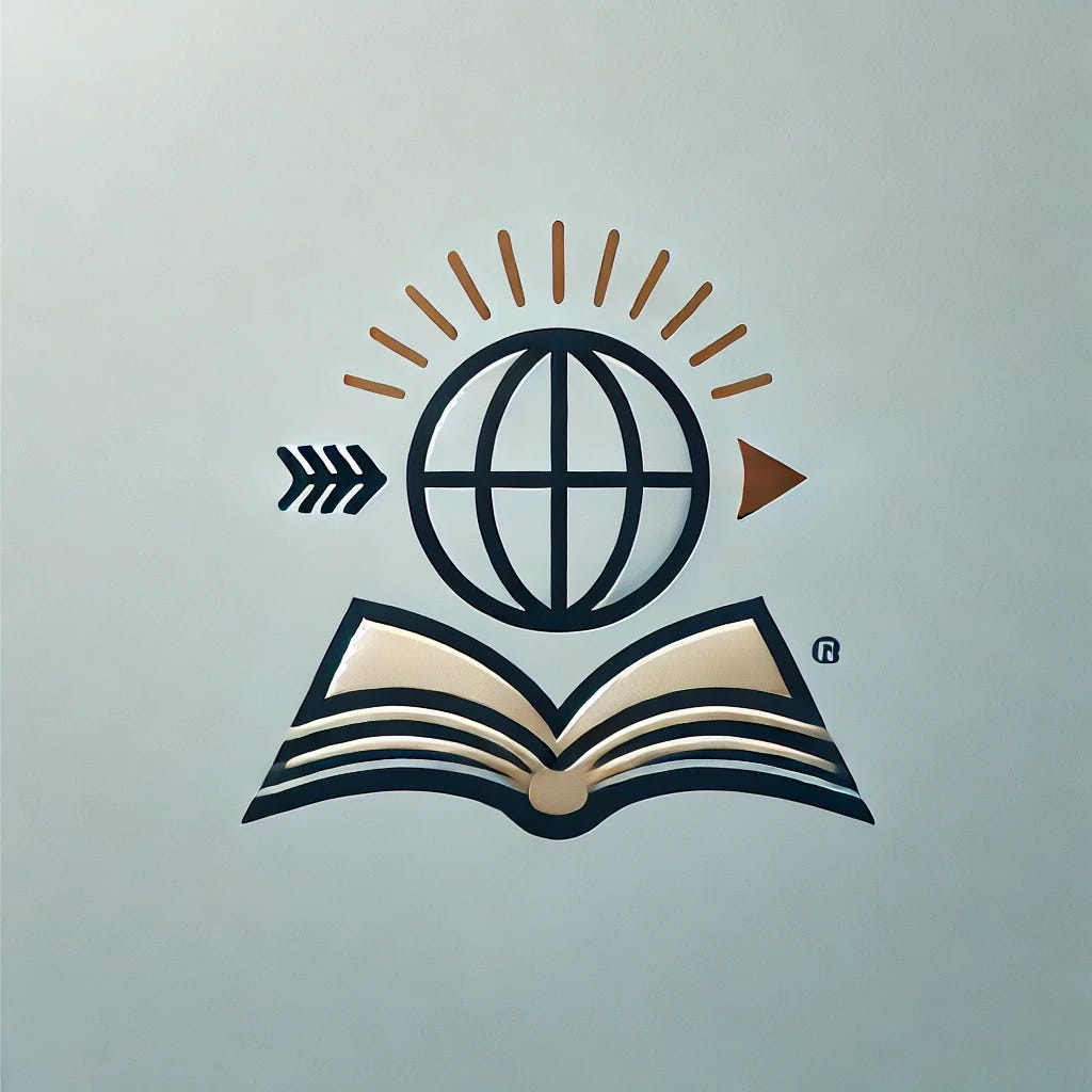 A minimalistic globe with a forward-facing arrow, symbolizing insight into world affairs. Alternatively, an open book with a rising sun to represent knowledge and new perspectives.